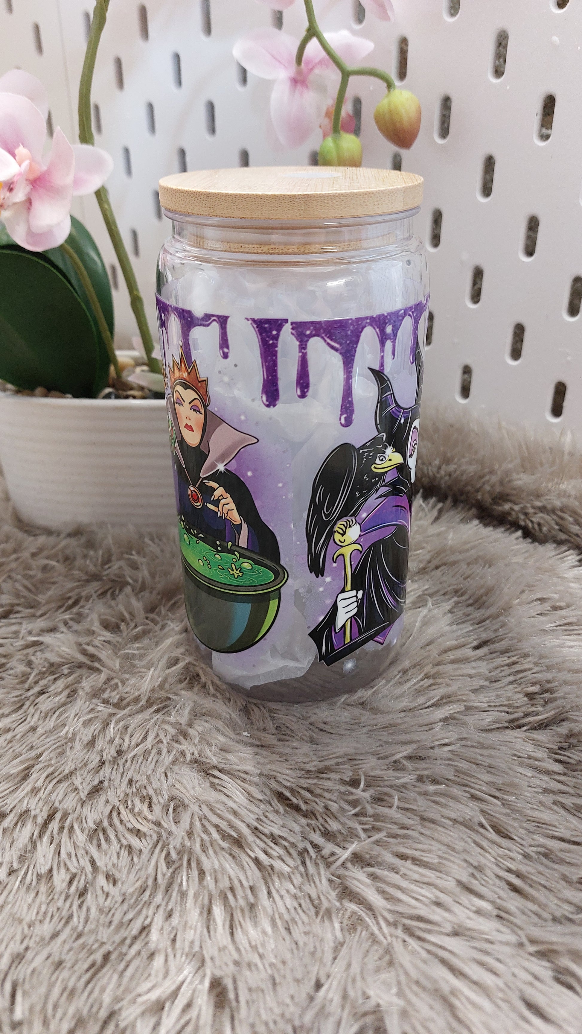 Entre magie noire et élégance, ce gobelet met à l’honneur une célèbre reine maléfique accompagnée d’une redoutable sorcière 🧪👑