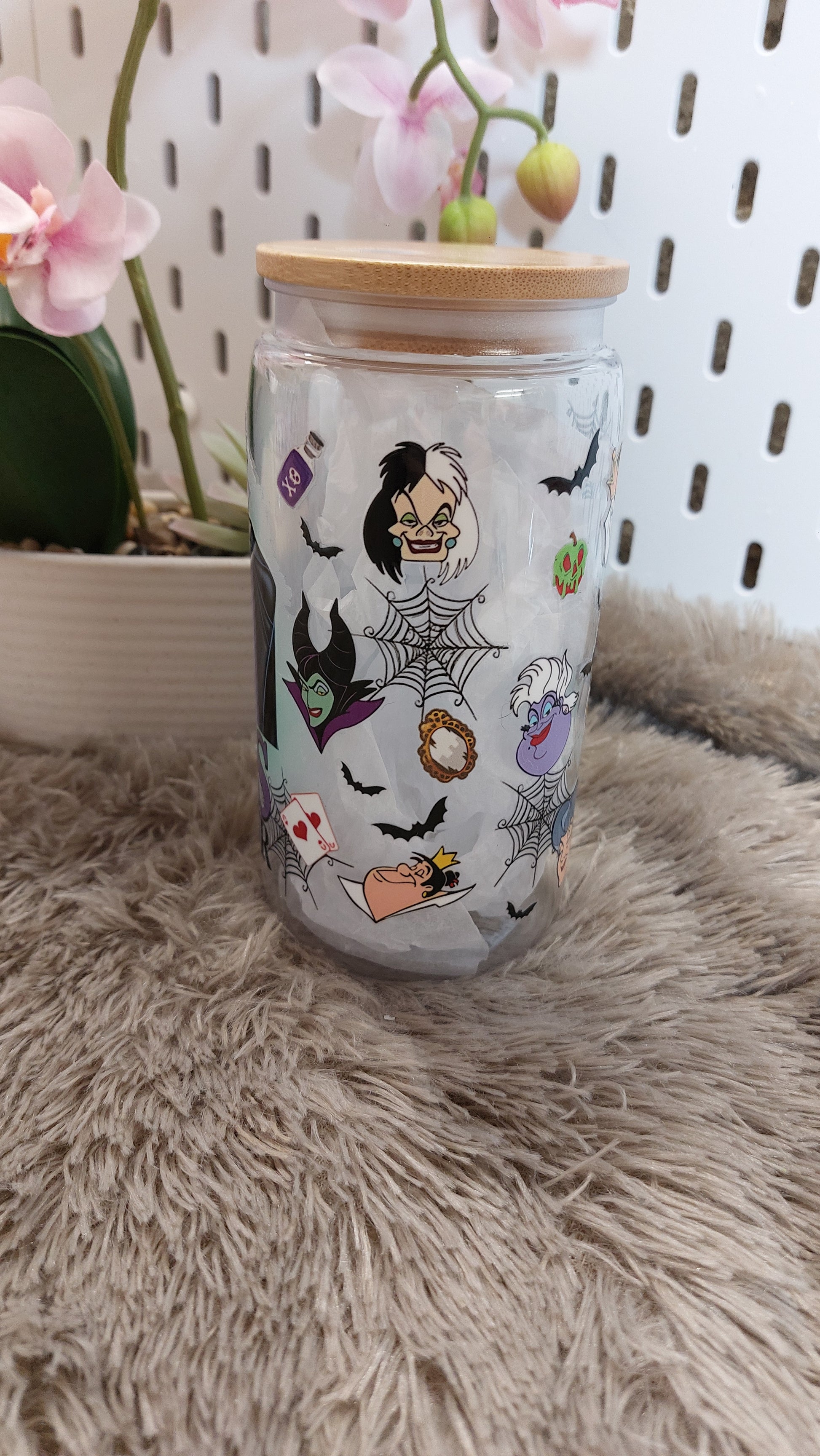 Un gobelet qui claque visuellement, pensé pour attirer immédiatement l’œil et créer de l’émotion. Ici, l’univers est sombre, magique et puissant : plusieurs figures méchantes emblématiques se retrouvent sur un même modèle, entourées d’éléments mystiques, d’effets violets et d’un design très graphique.