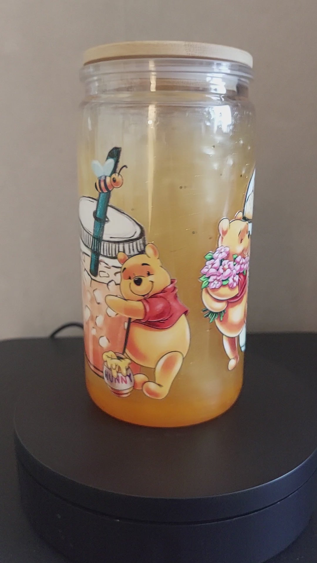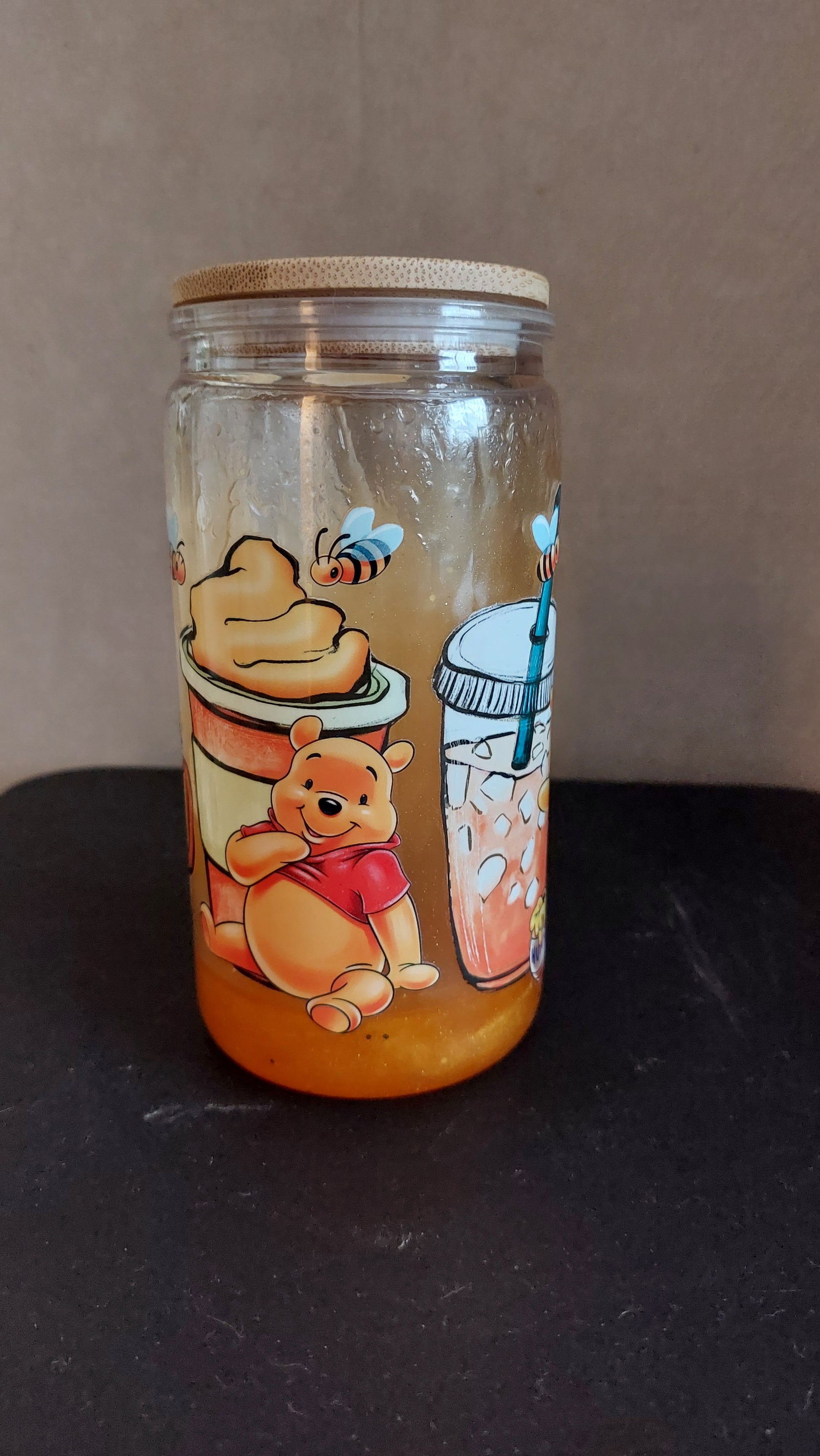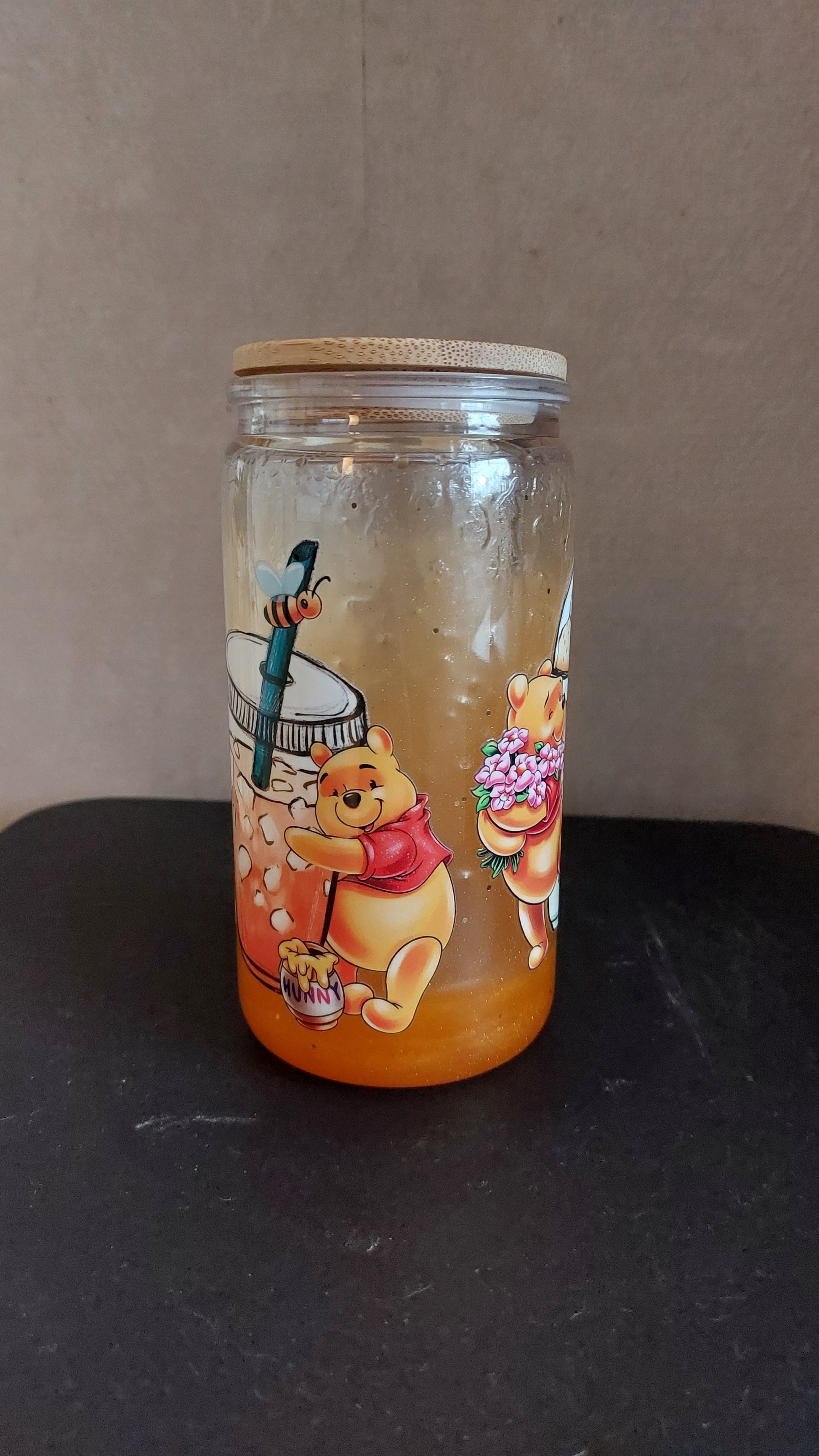 🍯 Gobelet double paroi effet miel – Ourson gourmand et paille incluse