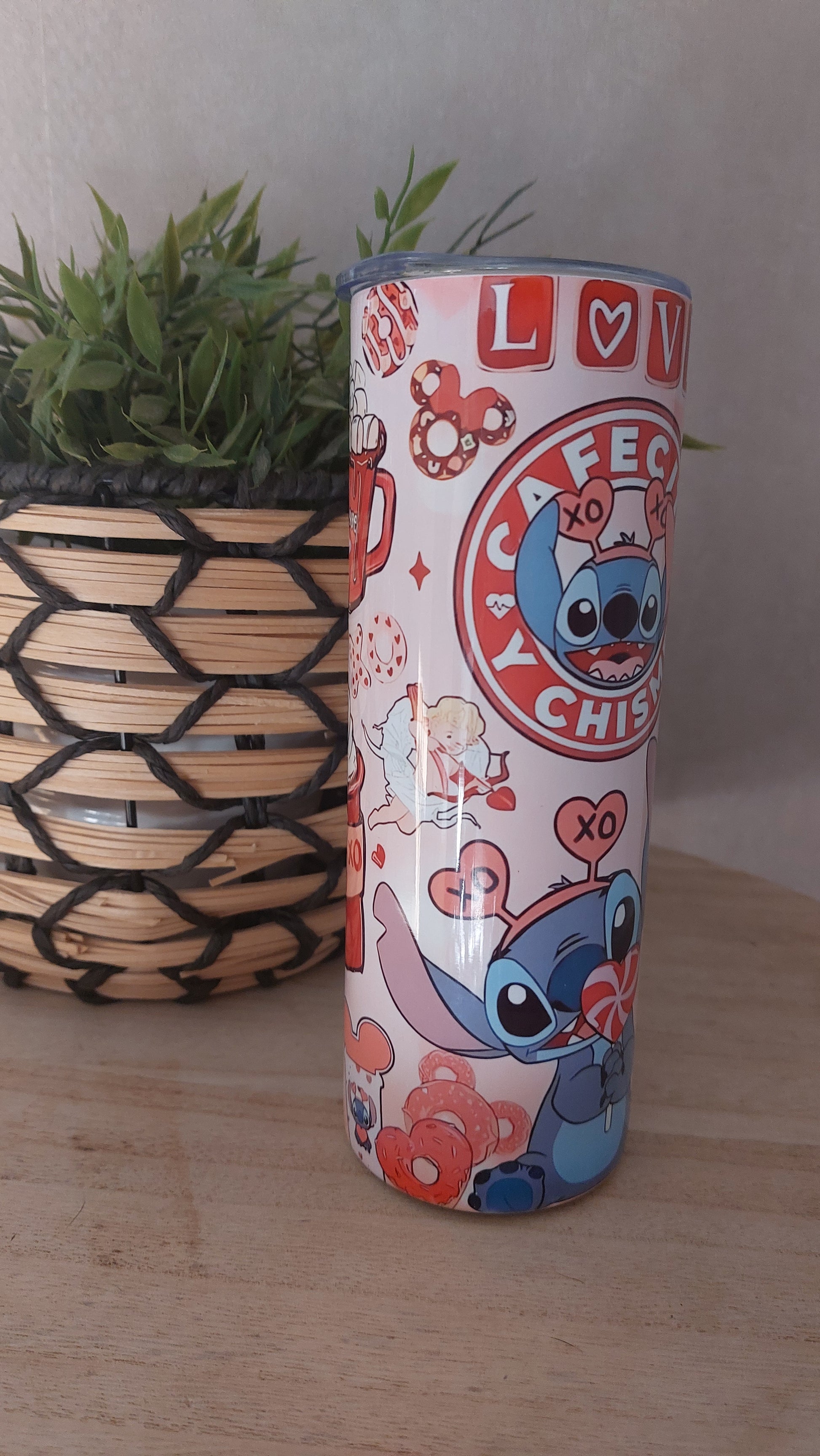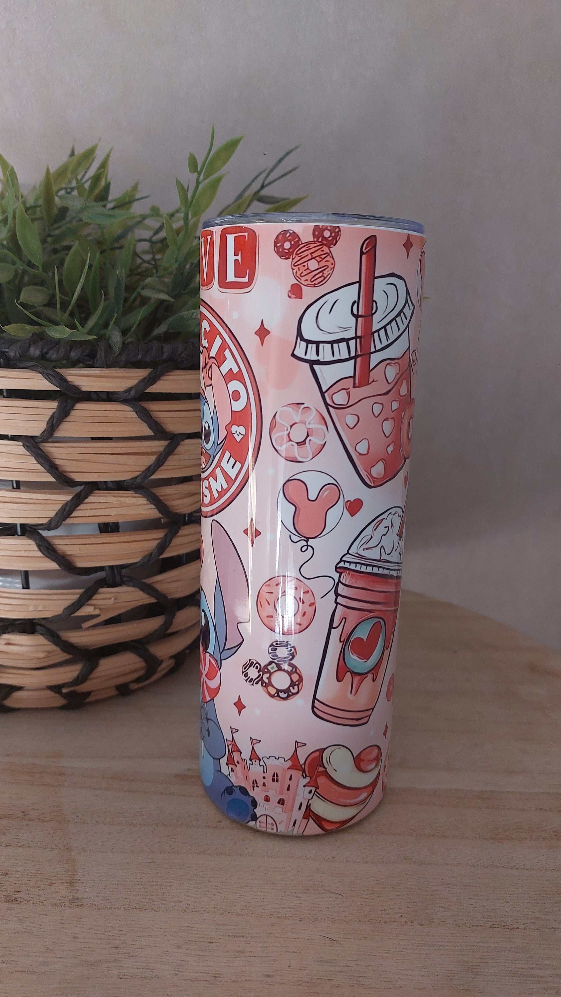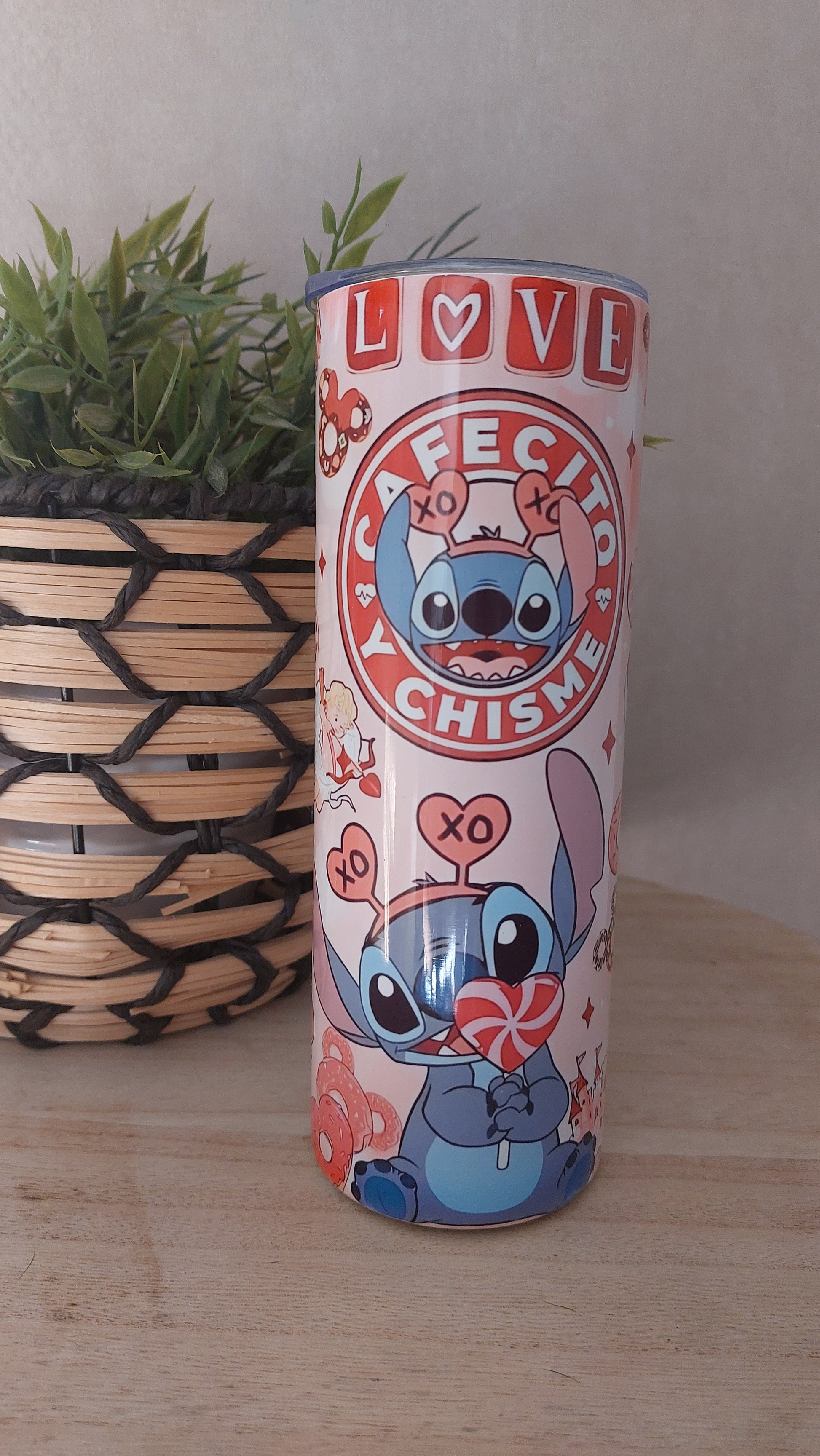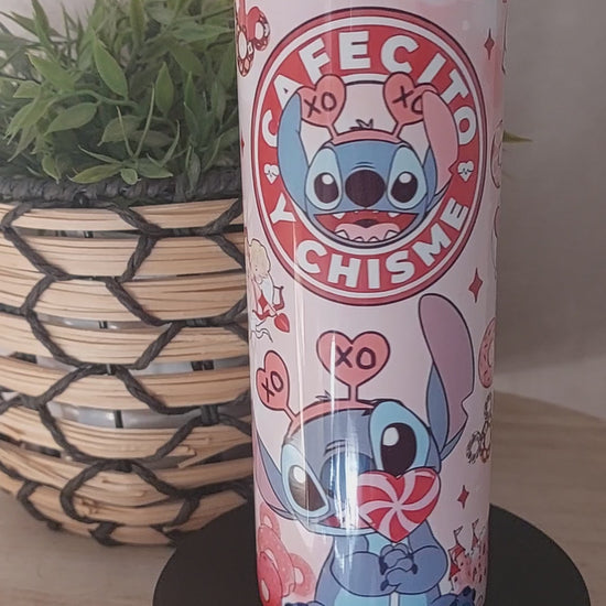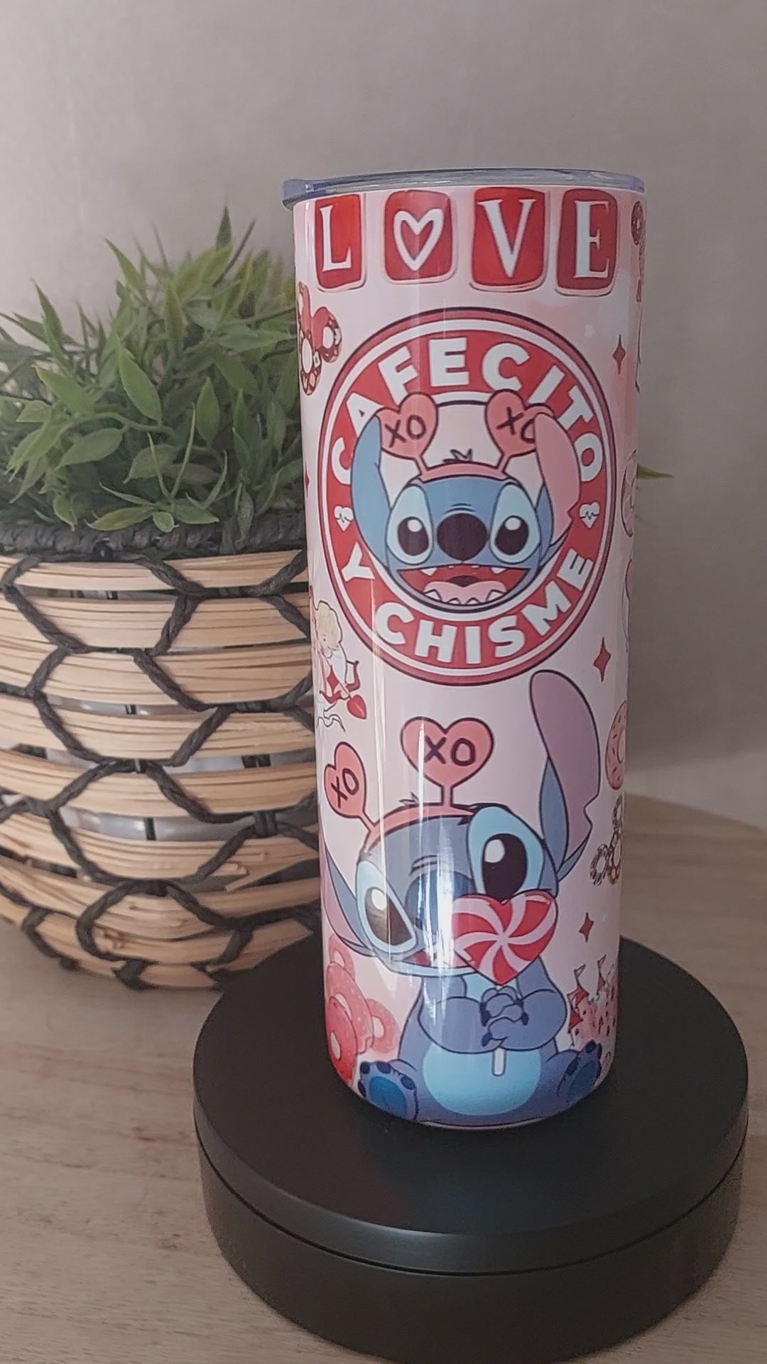 Plongez dans l’univers du cafecito y chisme (« café et papotage ») avec ce gobelet isotherme au design irrésistible. Sa surface rose et rouge est décorée du mot LOVE, d’une créature bleue espiègle tenant une sucette en forme de cœur et de charmants motifs de pâtisseries. Au centre, un médaillon met en avant l’inscription Cafecito y Chisme. Fabriqué en acier inoxydable 18/8, ce gobelet bénéficie d’une double paroi sous vide capable de garder vos boissons chaudes jusqu’à 6 heures et froides jusqu’à 12 heures.